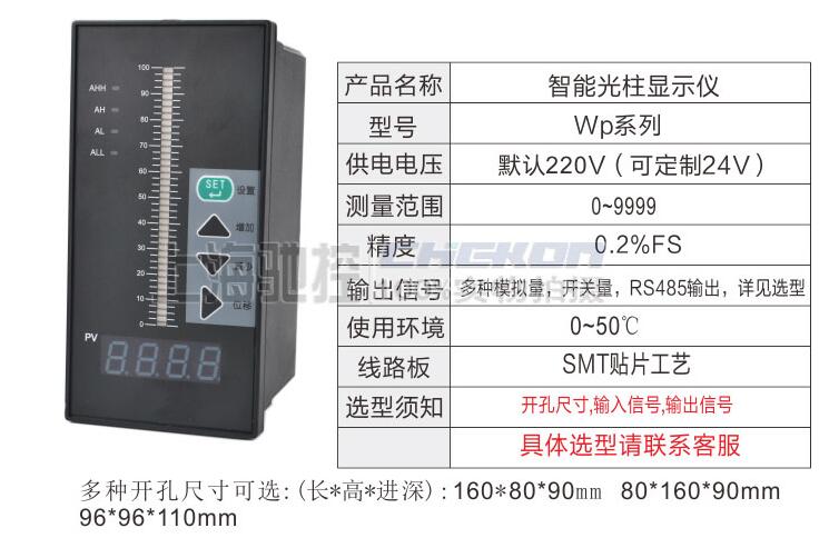 WP系列光柱显示仪 万能信号输入 4-20mA 上下限控制