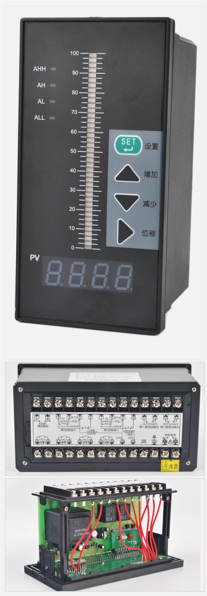 智能数字/光柱显示控制仪,采用先进的微处理器进行智能控制,适用于温度、湿度、压力、液位、瞬时流量、速度等多种物理量检测信号的显示及控制,并能对各种非线性输入信号进行高精度的线性校正。