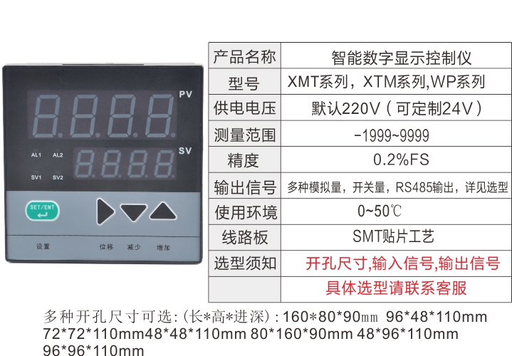 XMT系列智能数字显示仪 万能信号输入 4-20mA 上下限控制