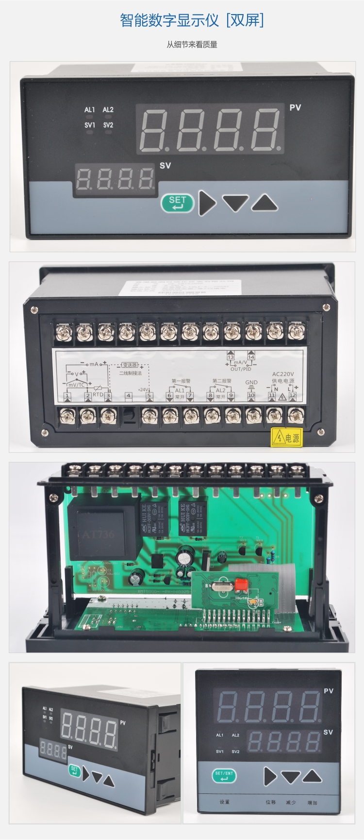 智能数字/光柱显示控制仪,采用先进的微处理器进行智能控制,适用于温度、湿度、压力、液位、瞬时流量、速度等多种物理量检测信号的显示及控制,并能对各种非线性输入信号进行高精度的线性校正。