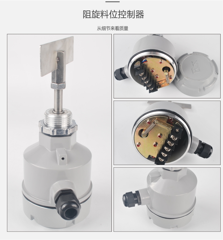 敞开或压力传输送容器内料位的控制。当料位碰到仪表的旋转翼片时,控制器的微动开关触点输出报警或控制信号。