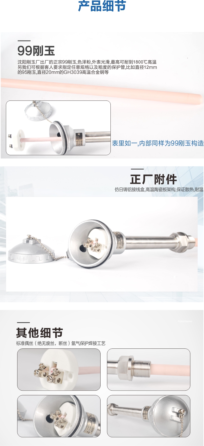 根据相关规定,我公司生产符合IEC标准分度号的铂铑 30-铂铑6、铂铑10-铂、镍铬-镍硅、镍铬-康铜等等的装配式热电偶。